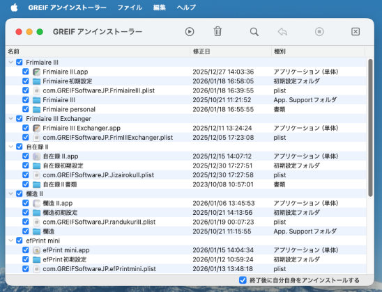 ホームページ>Macソフト>GREIF アンインストーラー